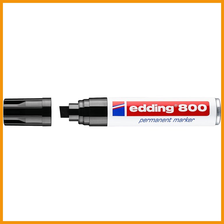Edding 800 on vankka musta huopakynä monipuoliseen ja vaativaan käyttöön. Kynässä on kestävä, 100-prosenttisesti kierrätysalumiinista valmistettu runko ja muovinen suojakorkki. Mustesäiliö voidaan täyttää uudelleen, ja kynään on saatavana myös vaihtokärkiä.Pysyvä ja lähes hajuton muste on sekä veden- että valonkestävää eikä sisällä tolueenia tai xyleeniä.Muste tarttuu siististi kaikenlaisille pinnoille, kuten paperille, kartongille, muoville, metallille, puulle, nahalle ja lasille.