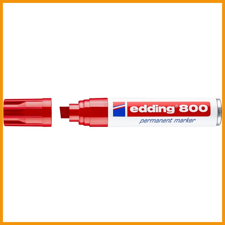 Edding 800 on vankka punainen huopakynä monipuoliseen ja vaativaan käyttöön. Kynässä on kestävä, 100-prosenttisesti kierrätysalumiinista valmistettu runko ja muovinen suojakorkki. Mustesäiliö voidaan täyttää uudelleen, ja kynään on saatavana myös vaihtokärkiä.Pysyvä ja lähes hajuton muste on sekä veden- että valonkestävää eikä sisällä tolueenia tai xyleeniä.Muste tarttuu siististi kaikenlaisille pinnoille, kuten paperille, kartongille, muoville, metallille, puulle, nahalle ja lasille.