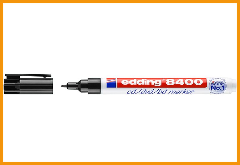 Edding 8400 on erityisesti CD- ja DVD-levyjen merkintään suunniteltu musta huopakynä. Kynässä on kestävä muovirunko ja muovinen suojakorkki.Pysyvä ja lähes hajuton pigmenttimuste on sekä veden- että valonkestävää eikä sisällä tolueenia tai xyleeniä. Muste tarttuu siististi eikä tahraa.