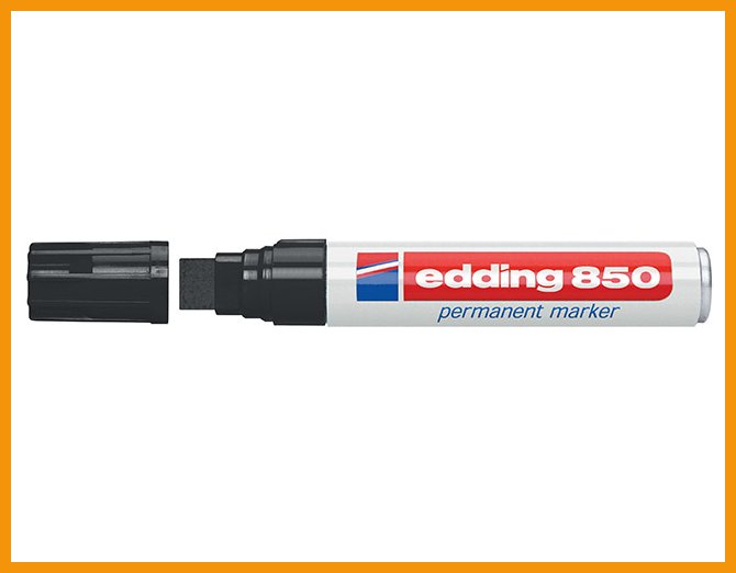 Edding 850 on vankka musta huopakynä monipuoliseen ja vaativaan käyttöön. Kynässä on kestävä, 100-prosenttisesti kierrätysalumiinista valmistettu runko ja muovinen suojakorkki. Mustesäiliö voidaan täyttää uudelleen, ja kynään on saatavana myös vaihtokärkiä.Pysyvä ja lähes hajuton muste on sekä veden- että valonkestävää eikä sisällä tolueenia tai xyleeniä.Muste tarttuu siististi kaikenlaisille pinnoille, kuten paperille, kartongille, muoville, metallille, puulle, nahalle ja lasille.