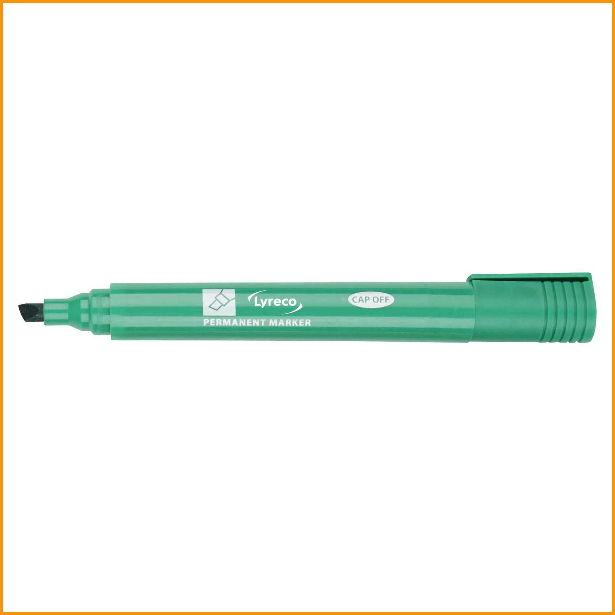 Lyreco permanent marker on pysyvämusteinen vihreä huopakynä nopeasti kuivuvalla, tahraamattomalla, haalistumattomalla ja vedenkestävällä musteella. ei sisällä xyleeniä eikä tolueenia. kynä toimii lähes kaikilla pinnoilla, kuten paperi, kartonki, kumi, puu, metalli, lasi ja muovi. korkissa on kätevä klipsi. pakkauksessa on 10 tussia. viisto kärki, viivan leveys 1,3 - 3,8 mm. Huopakynien minimitilaus 1 paketti = kpl . Tukkupakkauksessa 10 pakettia.Huopakynä Lyreco viisto 1,3-3,8mm permanent vihreä on hyvä toimistotarvike, jonka verkkokaupan tilauksen toimitus kestää 1-2 päivää. Muistathan, että toimitus on ilmainen yli 140 € hintaisille verkkokauppa ostoksille! Meiltä voit tilata laskulla ja ilman rekisteröitymistä. Poistotuote tuotetta saatavilla rajoitetusti, niin kauan kuin varastoa riittää. Varastosaldo 90 kpl. Päivitetty: 17.03.2026.