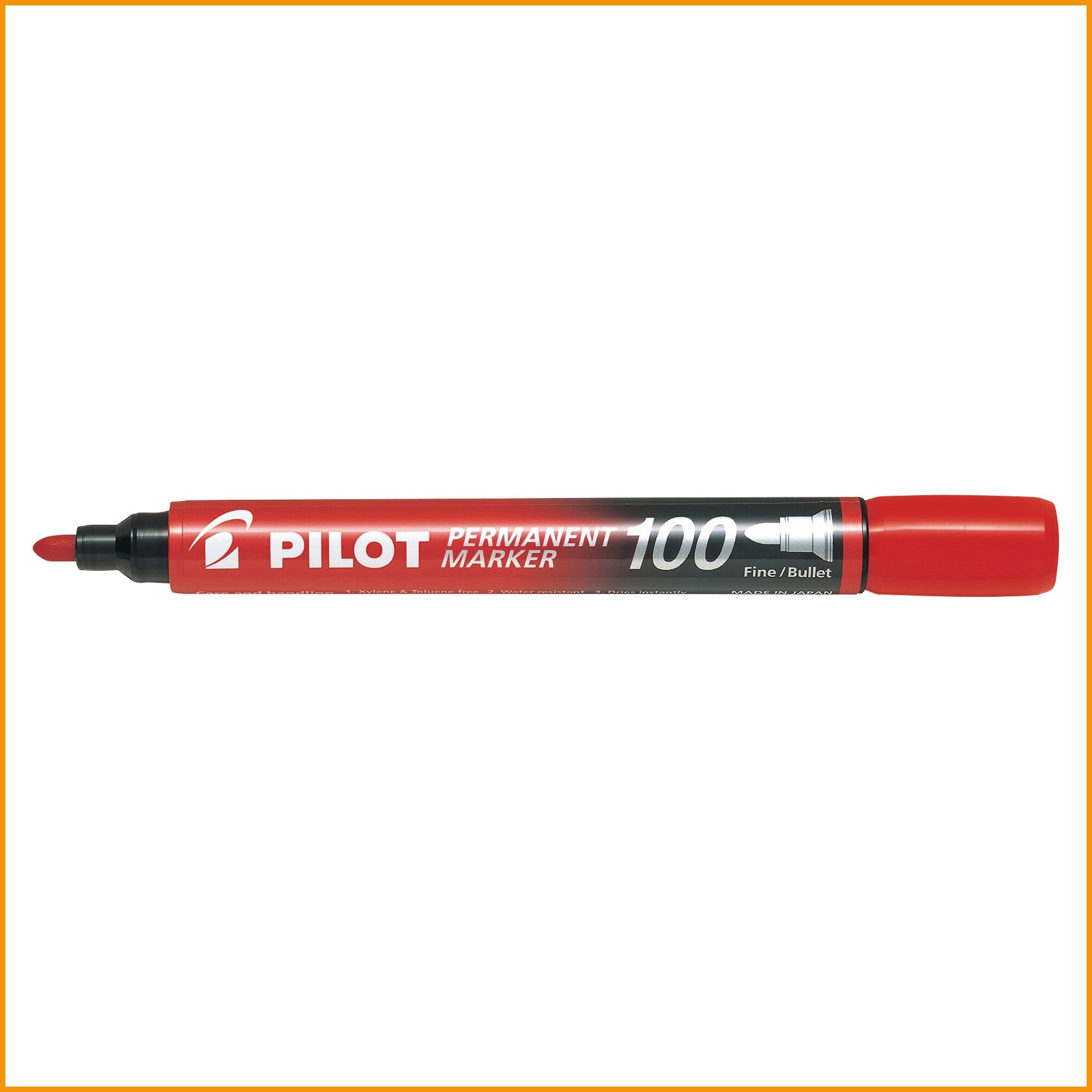 Hinta 1,65€ / kplPilot 100 on pysyvämusteinen huopakynä lähes kaikille pinnoille: paperi, kartonki, muovi, puu, metalli. muste kestää vettä, valoa, kuumuutta ja kylmää, ja korkki voi olla auki päivän musteen kuivumatta. muste ei sisällä xyleeniä. pyöreä kärki, viivan leveys 1,0 mm. myyntierä: 1 pkt (12 ...VarastossaTarkastele