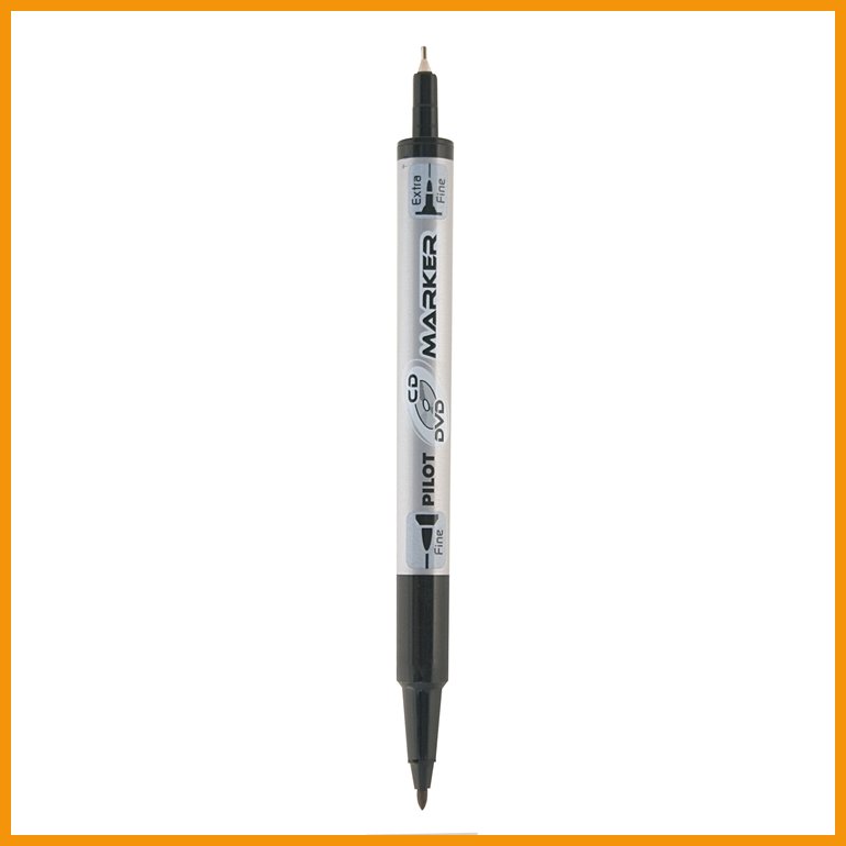 Pilot Twin CD/DVD Marker on nimensä mukaisesti erityisesti CD- ja DVD-levyjen merkintään soveltuva kaksipäinen musta huopakynä. Kynän kaksi akryylikärkeä ja pysyvä, öljypohjainen ja xyleenitön muste jättävät selkeän jäljen levyjen pintaan.Musteen väri: musta