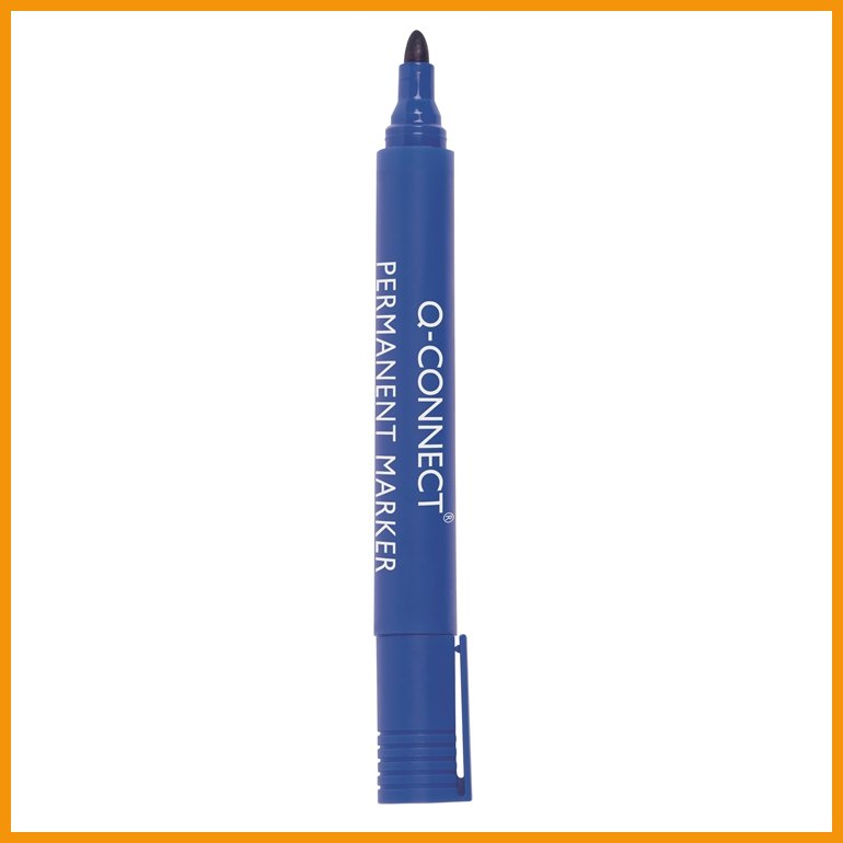 Q-Connectin sinisten huopakynien rungon ja muiden muoviosien valmistamisessa on käytetty 50 % GRS-sertifioitua kierrätysmuovia. Muovisessa korkissa on taskuklipsi ja kärki kestää kovaakin käyttöä. Voit kirjoittaa kynällä käytännössä kaikenlaisille pinnoille, kuten mm. paperille, kartongille, puulle, muoville, lasille, metallille, CD- ja DVD-levyille ja jopa kiveen.Pysyvä alkoholipohjainen ja nopeasti kuivuva muste on lähes hajutonta, vedenkestävää, tolueenitonta ja xyleenitöntä. Kynä ei kuivu kahteen tuntiin, vaikka korkki jäisi auki. Mustetta riittää 200 metrin kirjoittamiseen.