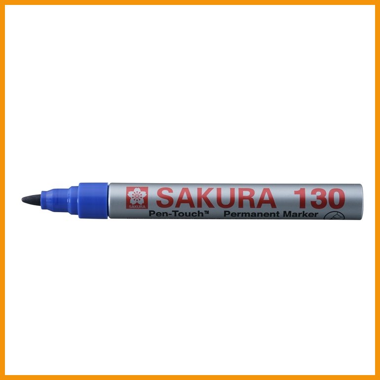 Sakura Pen-Touch 130 sinisen huopakynän pysyvä ja taatusti näkyvä väriaine sisältää xyleeniä, joka tekee siitä erittäin voimakkaasti kiinnittyvän. Kynä tarttuu niin kumi-, metalli-, lasi-, kivi-, puu-, sementti-, posliini- kuin muovipintoihinkin (ei kuitenkaan styroxiin) ja kärki kestää kovaakin käyttöä. Spriiliukoinen muste kestää vettä ja haalistumista. Huom! Muste ei ole pysyvää lasi- tai keramiikkapinnoilla.Musteen väri: sininen