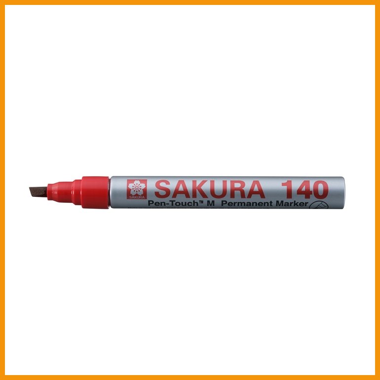 Sakura Pen-Touch 140 punaisen huopakynän pysyvä ja taatusti näkyvä väriaine sisältää xyleeniä, joka tekee siitä erittäin voimakkaasti kiinnittyvän. Kynä tarttuu niin kumi-, metalli-, lasi-, kivi-, puu-, sementti-, posliini- kuin muovipintoihinkin (ei kuitenkaan styroxiin) ja kärki kestää kovaakin käyttöä. Spriiliukoinen muste kestää vettä ja haalistumista. Huom! Muste ei ole pysyvää lasi- tai keramiikkapinnoilla.Musteen väri: punainen