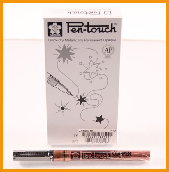 Sakura Pen-Touch -huopakynän pysyvä ja taatusti näkyvä väriaine tarttuu niin metalli-, lasi-, puu-, posliini- kuin muovipintoihinkin, mutta on upeimmillaan mustetta imemättömillä pinnoilla, kuten pinnoitetulla paperilla. Kärki kestää kovaakin käyttöä. Spriiliukoinen, xyleenitön ja miedosti tuoksuva muste kestää vettä ja haalistumista. Huom! Muste ei ole pysyvää lasi- tai keramiikkapinnoilla.Musteen väri: kupari