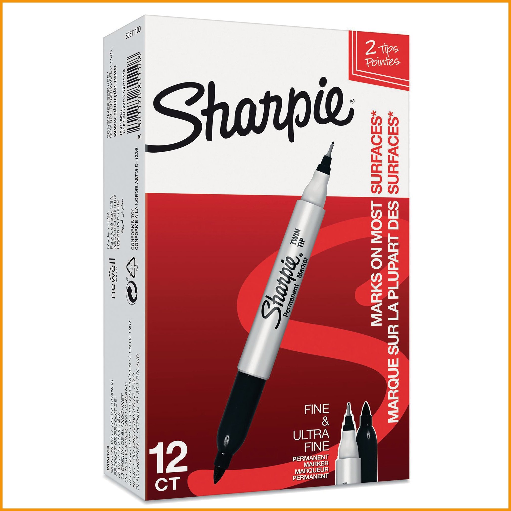 Sharpie-huopakynässä on kaksi kärkeä: fine-kärki paksumpia viivoja ja värittämistä sekä ultra fine -kärki kirjoittamista ja muuta tarkempaa työskentelyä varten. kynän nopeasti kuivuva muste ei sotke, ja jättää jäljen useimmille pinnoille, kuten esimerkiksi puuhun tai metalliin. kärjet: fine 1 mm ja ultra fine 0,5 mm. väri: musta. Huopakynien minimitilaus 1 paketti = kpl . Tukkupakkauksessa 12 pakettia.Huopakynä Sharpie kaksikärkinen musta on tasokas toimistotuote, jonka verkkokaupan tilauksen toimitus kestää 1-2 päivää. Muistathan, että ilmainen toimitus on kaikilla yli 140 € hintaisilla tilauksilla! Meiltä voit tilata laskulla ja ilman rekisteröitymistä.