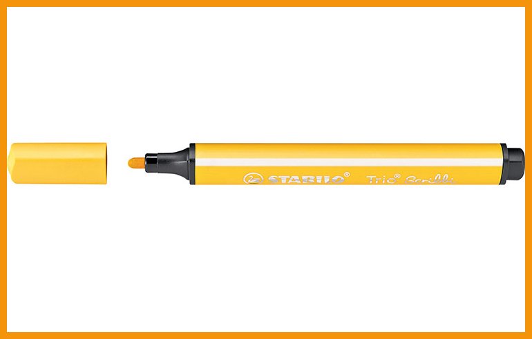 STABILO Trio Scribbi on erittäin kestävällä joustokärjellä ja kolmikulmaisella rungolla varustettu huopakynä erityisesti pienten lasten käyttöön. Sisään painuva ja sieltä paineen hellittäessä esiin hyppäävä joustokärki pysyy hyväkuntoisena, vaikka pieni taiteilija ei vielä aivan hallitsisi voimiaan. Helposti pesussa käsistä ja vaatteista irtoava vesiliukoinen muste saa aikaan kirkkaat värit. Korkki on ventiloitu.Viivan leveys: 1,5 - 2 mm