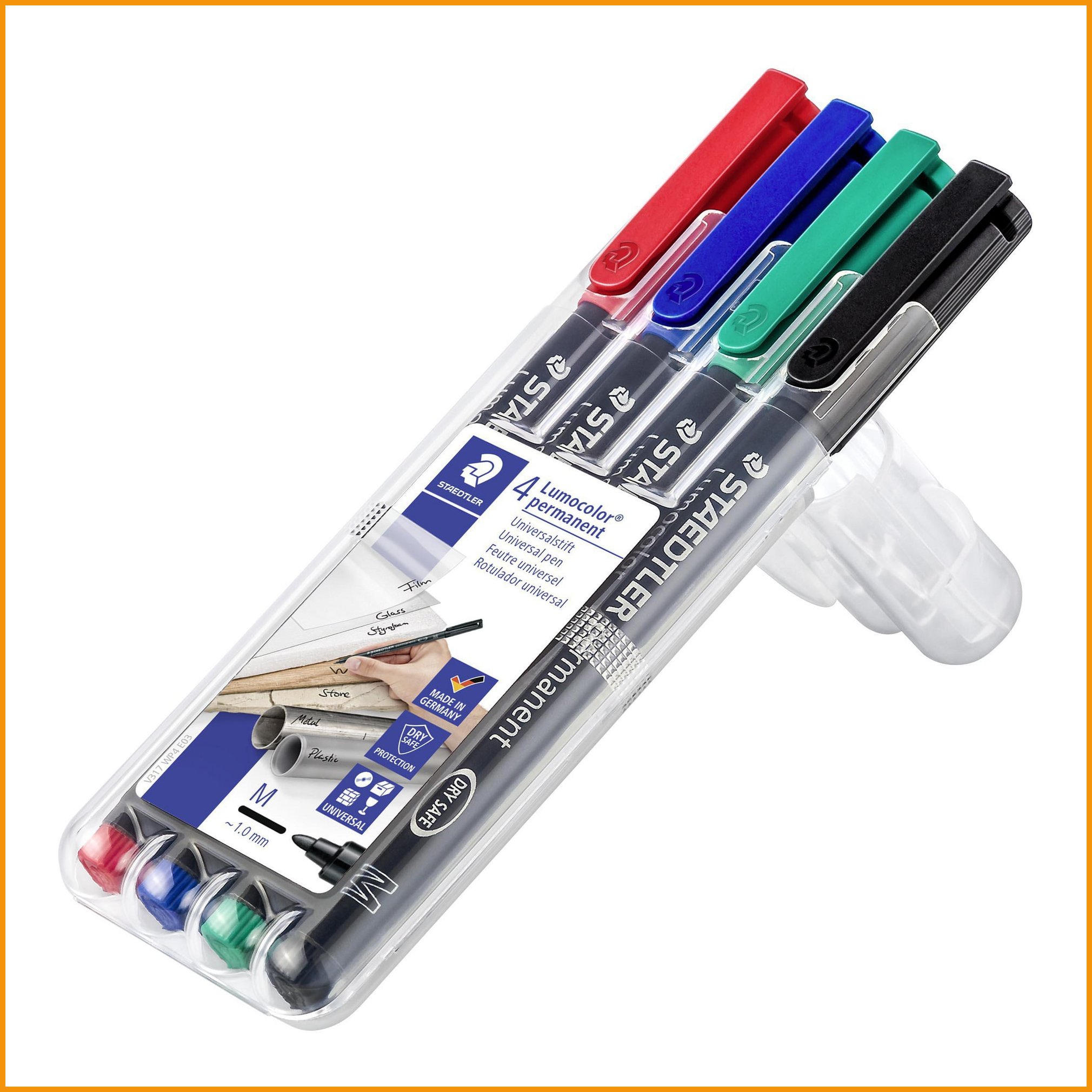 Hinta 7,66€ / 4 kplStaedtler lumocolor 318 -huopakynä tarttuu lähes kaikille pinnoille, kuten paperi, kartonki, muovikalvo, lasi, muovi, metalli, nahka, kivi, posliini ja puu. spriiliukoinen pysyvä muste kuivuu erittäin nopeasti, joten kynä soveltuu hyvin vasenkätisille. kynän mustesäiliö kestää lentokoneen ...