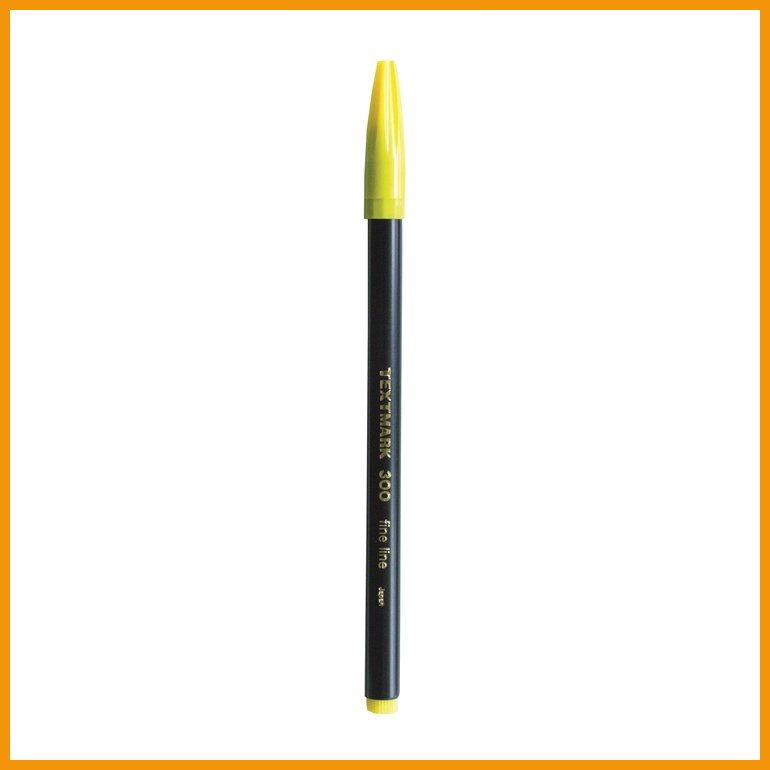Textmark 300 on suomalaisten suosion saavuttanut huopakynä, jolla on jo yli 50 vuoden historia ja vähintään yhtä menestyksekäs tulevaisuus. Kynässä on vankka akryylikärki ja suojakorkki. Useimmille sileille pinnoille sujuvasti tarttuva muste on vesiliukoista ja kuivuu nopeasti.Musteen väri: keltainen