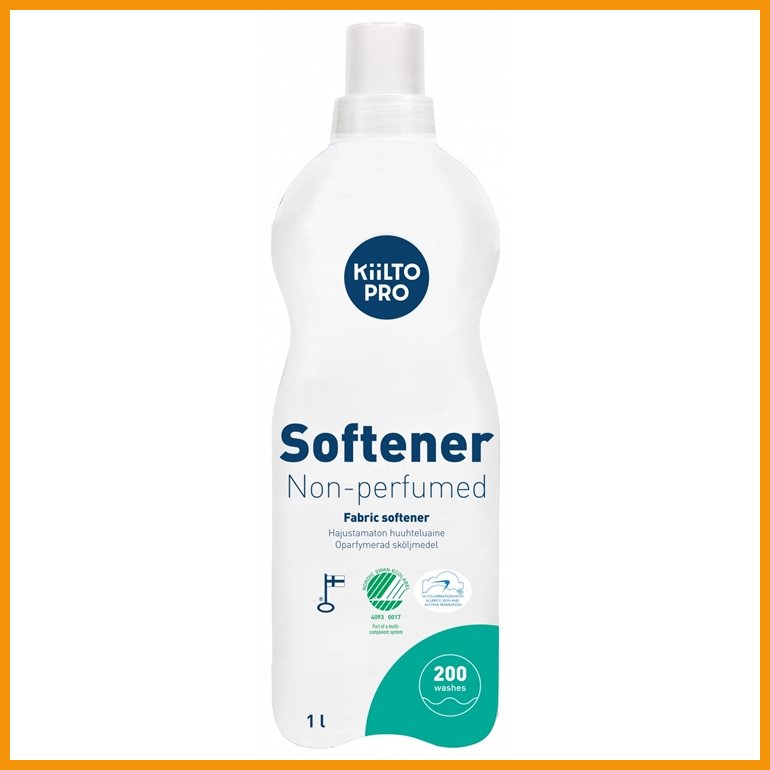 Kiilto Pro Softener Non-perfumed on yhteistyössä Allergia-, Iho- ja Astmaliiton kanssa kehitetty huuhteluaine. Hellävarainen, korkealuokkaisista ja turvallisista raaka-aineista valmistettu tuote ei sisällä hajusteita, väriaineita eikä säilöntäaineita, mutta tekee pyykin raikkaaksi, pehmeäksi ja kuohkeaksi. Huuhteluaineen käyttö parantaa kankaiden siliävyyttä ja poistaa sähköisyyden synteettisistä kuiduista.Kotimaisella tuotteella on Avainlippu-tunnus ja pohjoismainen Joutsenmerkki. Hellävaraisella tuotteella on myös Allergia-, Iho- ja Astmaliiton tunnus.