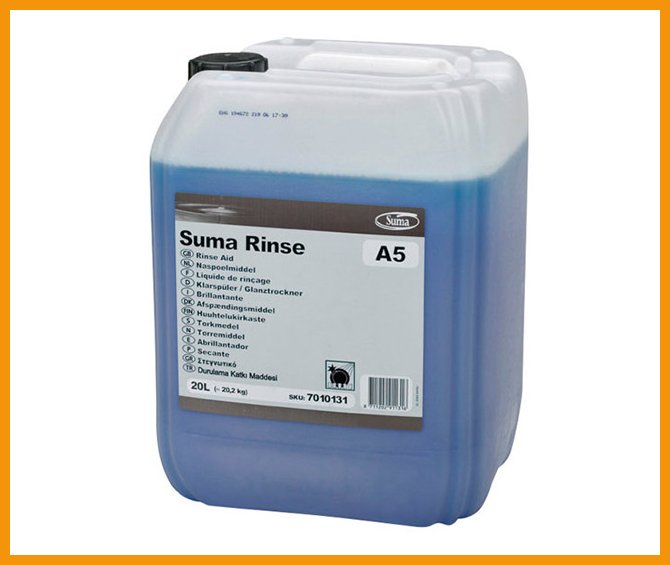 Diverseyn Suma Rinse A5 on nestemäinen ja matalavaahtoinen huuhtelukirkaste astioiden konepesuun. Neutraali aine sopii kaikentyyppisiin astianpesukoneisiin. Tuotteen ionittomat pinta-aktiiviset ainesosat nopeuttavat astioiden kuivumista ja estävät pisarajälkien muodostumisen.Pakkauskoko: 20 litraa