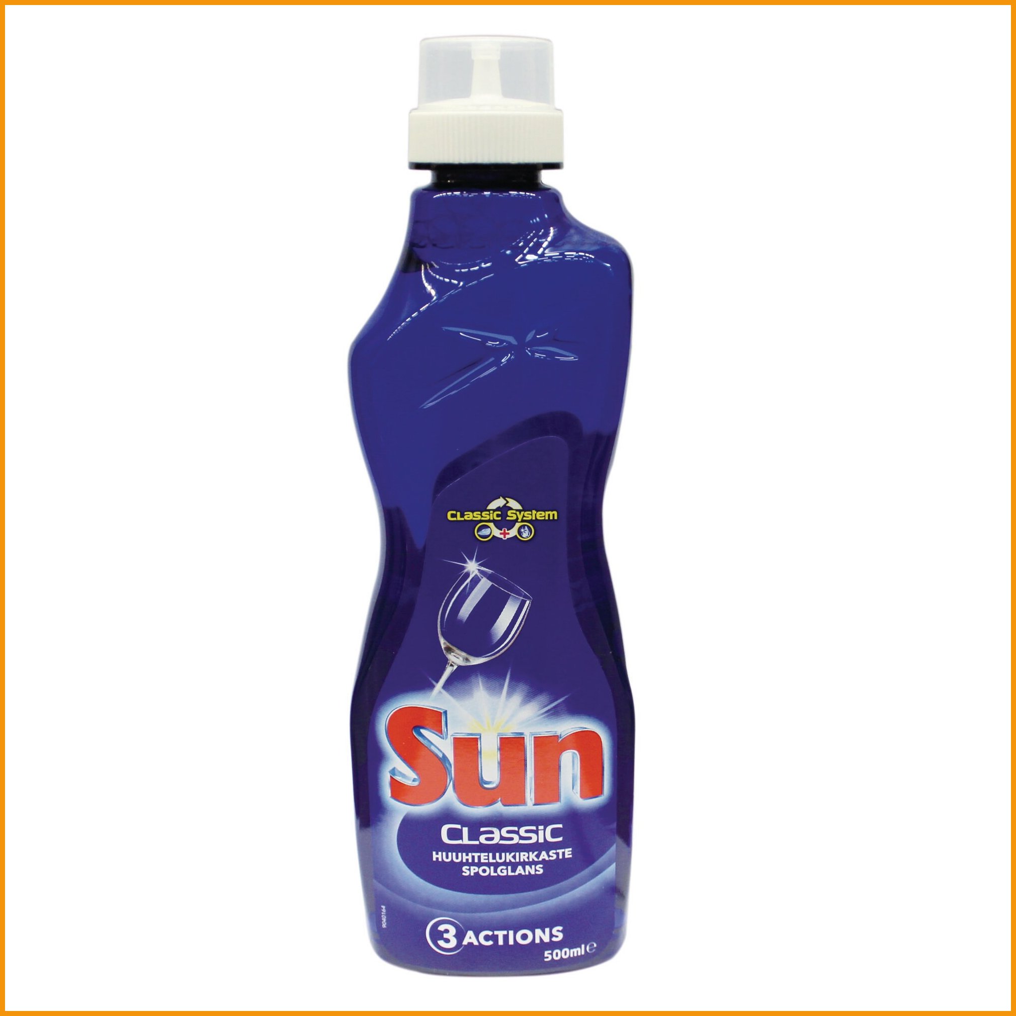 Pesuaineet ja siivousaineet ammattikäyttöön. Huuhtelukirkaste Sun 500ml on laadukas kolmetoiminen astioiden huuhteluun soveltuva huuhtelukirkaste. Huuhtelukirkaste ei jätä pisaroiden jälkiä ja saa astiat kirkastumaan.
