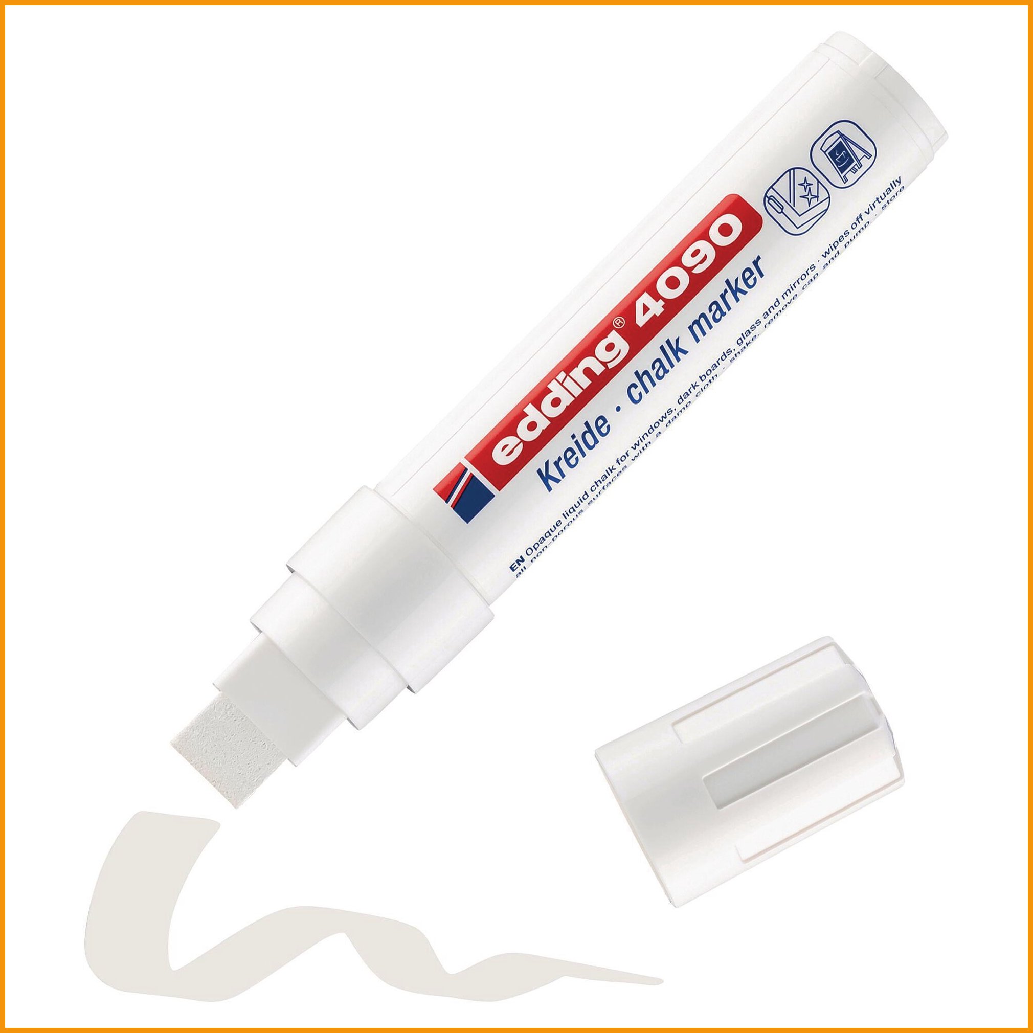 Edding 4090 -ikkunatussi soveltuu kirjoittamiseen lasi-, peili- ja liitutaulupinnoille. sen vesipohjainen muste on helppo pyyhkiä pois märällä sienellä. pyöreä kärki, viivan leveys 4–15 mm. Ikkunatussien minimitilaus 1 paketti = 5 kpl. Tukkupakkauksessa 100 kpl.Ikkunatussi Edding 4090 viisto 4-15mm valkoinen on upea toimistotarvike, jonka verkkokauppatilauksen toimitus perille kestää 1-2 päivää. Muistathan, että ilmainen toimitus on kaikilla yli 140 € hintaisilla tilauksilla! Meiltä voit tilata laskulla ja ilman rekisteröitymistä.