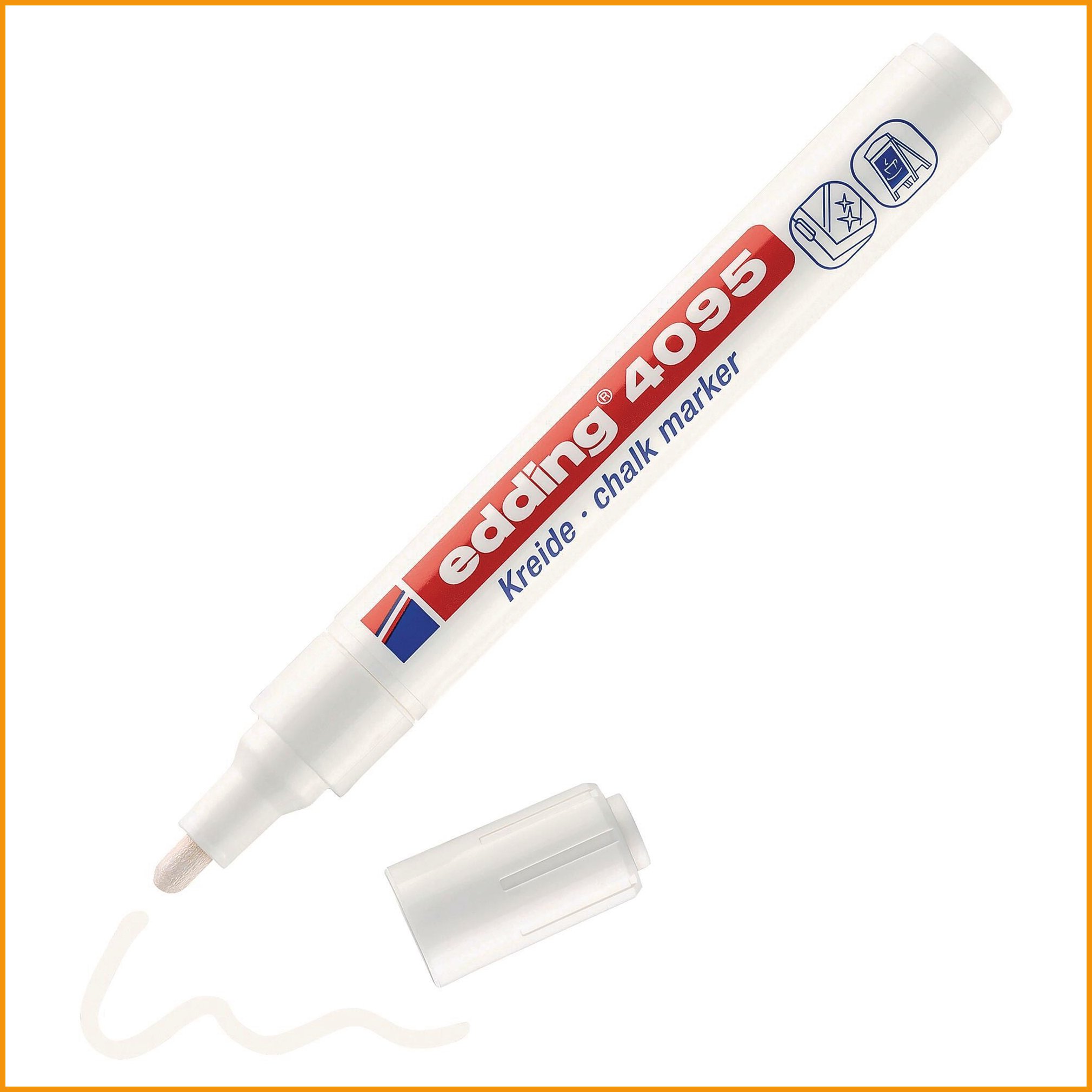 Edding 4095 -ikkunatussi soveltuu kirjoittamiseen lasi-, peili- ja liitutaulupinnoille. sen vesipohjainen muste on helppo pyyhkiä pois märällä sienellä. pyöreä kärki, viivan leveys 2-3 mm. Ikkunatussien minimitilaus 1 paketti = 10 kpl. Tukkupakkauksessa 400 kpl.Ikkunatussi Edding 4095 pyöreä 2-3mm valkoinen on mainio toimistotuote, jonka verkkokaupan tilauksen toimitus kestää 1-2 päivää. Tiedäthän, että toimitus on ilmainen yli 140 € hintaisille verkkokauppa ostoksille! Meiltä voit tilata laskulla ja ilman rekisteröitymistä.