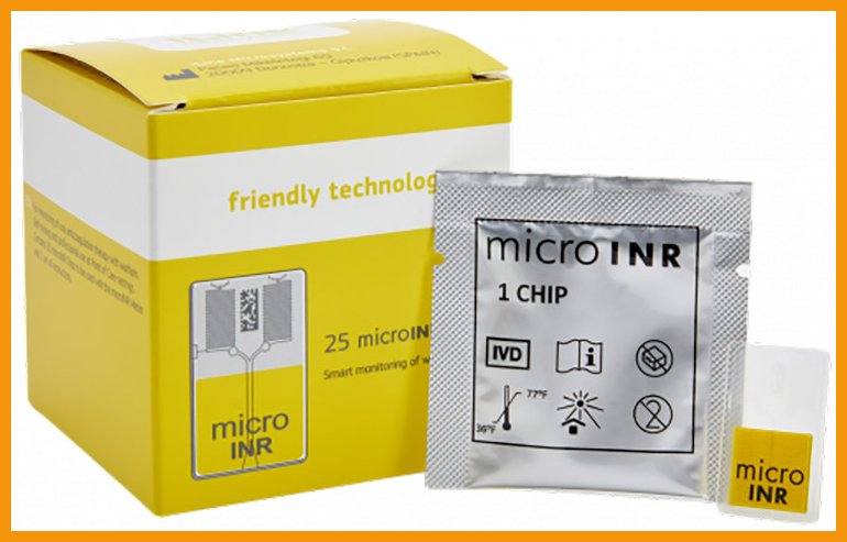 iLine microINR chips -testiliuskat iLine microINR-mittariin. Testillä mitataan INR-arvoa sormenpääverinäytteestä ja seurataan varfariinihoidossa olevien potilaiden hoitotasapainoa. Näytteenotto tapahtuu sormenpääverinäytteestä suoraan testiliuskalle.