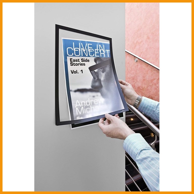 Durable Duraframe on itsekiinnittyvä, magneettisilla kehyksillä varustettu infotasku, jonka sisälle asetetun dokumentin voi vaihtaa vaivattomasti toiseen. Magneettinen kehys avautuu helposti ja sulkeutuu napakasti käden käänteessä.Duraframe kiinnittyy tasaisille pinnoille yhä uudelleen ja uudelleen, joten sen paikkaa on helppo vaihtaa tarpeen mukaan. Läpinäkyvän kehyksen ansiosta dokumentti näkyy molempiin suuntiin, joten Duraframe on omiaan mm. lasioviin.