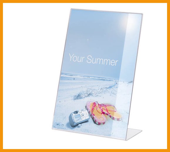 Durablen L-mallisen infotelineen A4-kokoisen dokumentin vaihtaminen käy käden käänteessä. Mm. messuille ja vastaanottotiloihin soveltuvan telineen liukumaton pohja ja kirkas pinta takaavat esitteen näkyvyyden.Koko: A4.