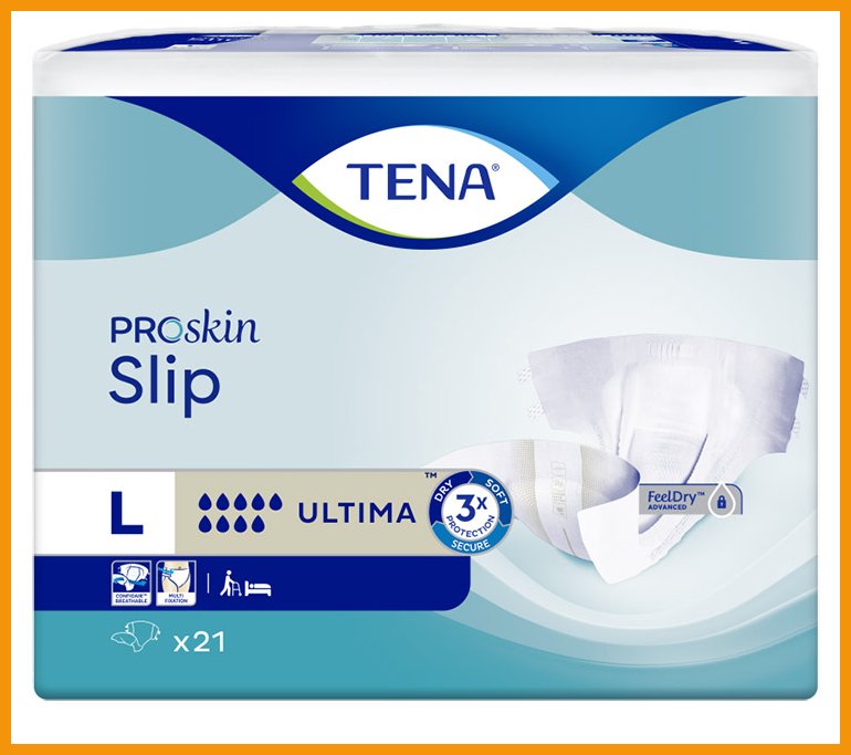 TENA ProSkin Slip Ultima on erittäin vaikeaan virtsankarkailuun tarkoitettu Inkontinenssisuoja, jonka säädettävät teipit takaavat erinomaisen istuvuuden ja käyttömukavuuden. Erittäin imukykyinen suoja on hyvä valinta apua tarvitseville henkilöille tai vuodepotilaille. Nopeasti runsaastikin nestettä imevä ja välittömästi hajut neutraloiva suoja pitää ihon kuivana pitkään päivin ja öin. Selkeä kosteusilmaisin kertoo, milloin suoja on aika vaihtaa.Kolmitehoinen TENA-suoja pitää ihon pinnan kuivan tuntuisena, on hellävarainen iholle ja vähentää reunavuotoja. Dermatologisesti testatut housut ovat Skin Health Alliancen hyväksymät.