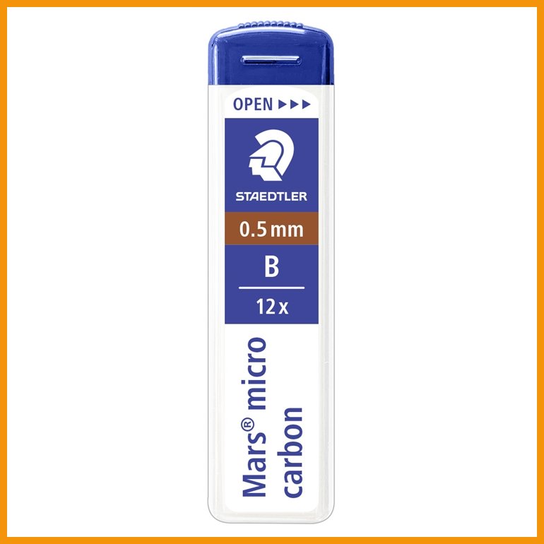 Staedtler Mars Micro Carbon on PVC-vapaa, yli 90-prosenttisesti luonnollisista raaka-aineista valmistettu korkealaatuinen irtolyijy lyijytäytekynään.Lyijyn paksuus: 0,5 mm
