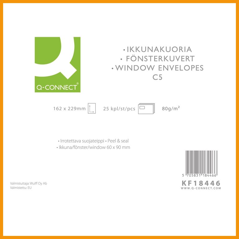 Isoikkunakuori Q-CONNECT C5 80G valkoinen 60 x 90 mm /25 hinta 2,83€