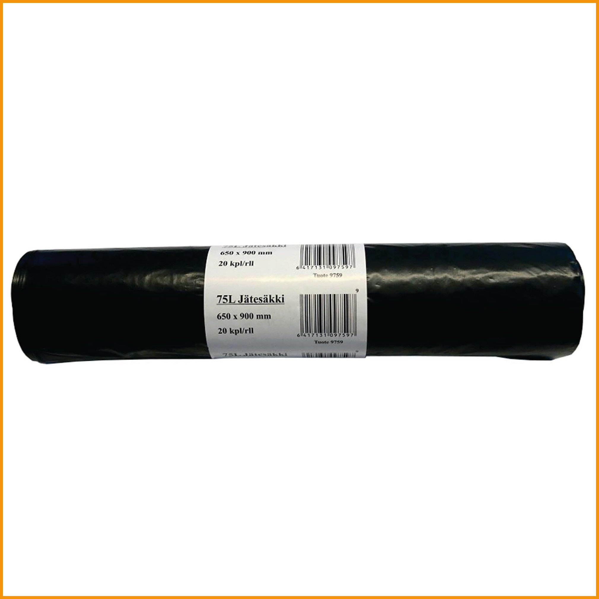 Keskikokoiseen roskakoriin sopiva 75 litran jätesäkki on valmistettu ld-pe-muovista. Jätesäkin mitat ovat: 650 x 900 mm paksuus: 0,04 rullassa on 20 säkkiä.Jätesäkit toimitetaan 20 kappaleen erissä.