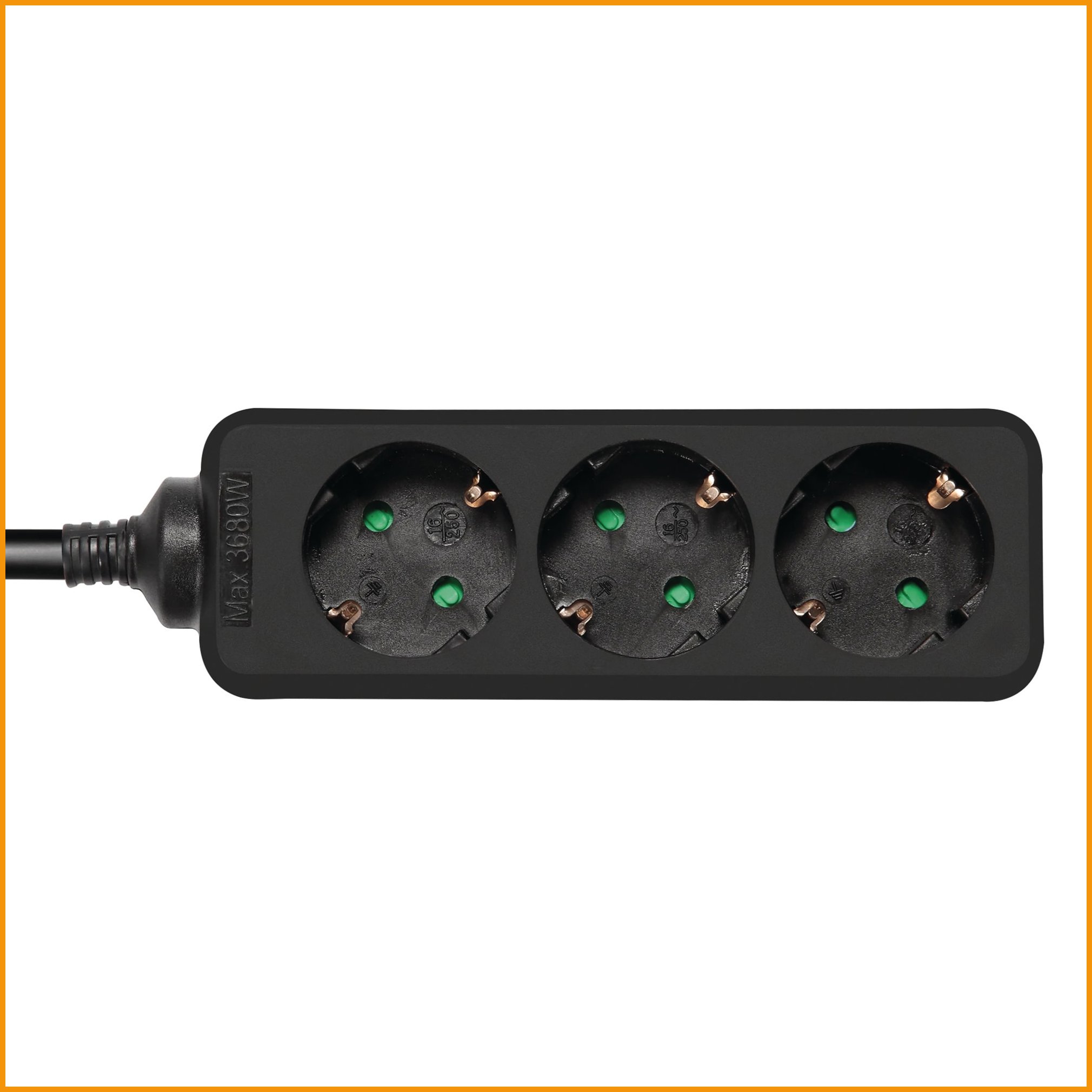 Jatkojohto Deltaco 3-osainen maadoitettu 3m, musta