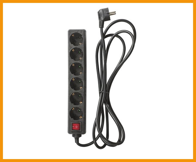 Airamin maadoitettu ja lapsisuojattu, kytkimellä ja merkkivalolla varustettu 6-osainen jatkojohto sisäkäyttöön. Pistokkeet ovat 45 ° kulmassa.Johdon pituus: 3 m