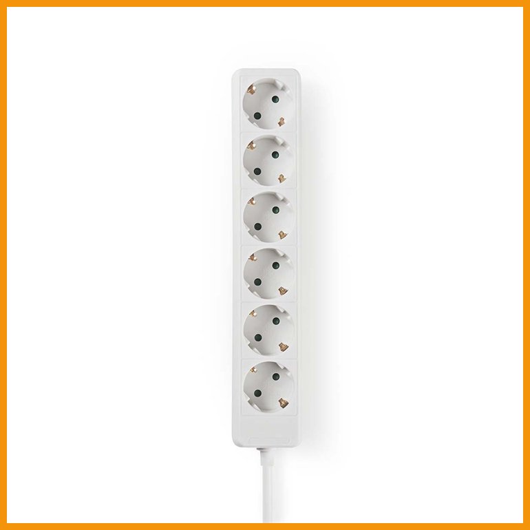 Nedisin maadoitettu ja lapsisuojattu 6-osainen jatkojohto sisäkäyttöön. Pistokkeet ovat 45 ° kulmassa.Johdon pituus: 1,5 m