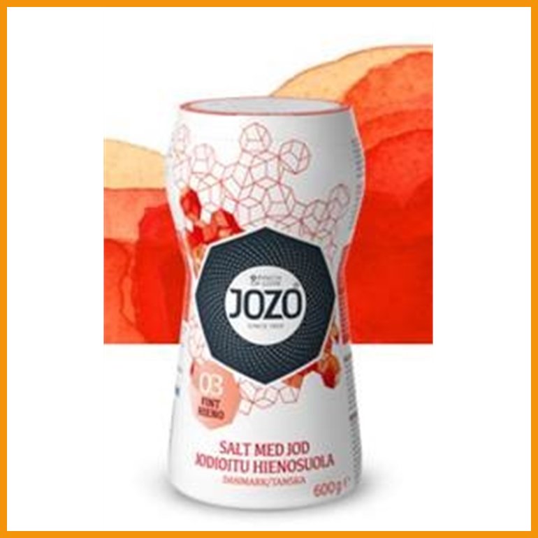Jozon Jodioitu suola edistää hermoston normaalia toimintaa. Hienoksi jauhettu suola on peräisin Alankomaiden ja Tanskan maanalaisista kerrostumista. Jodia suolassa on 2,5 mg/100 g. Sirotin.Sisältö: 600 g.