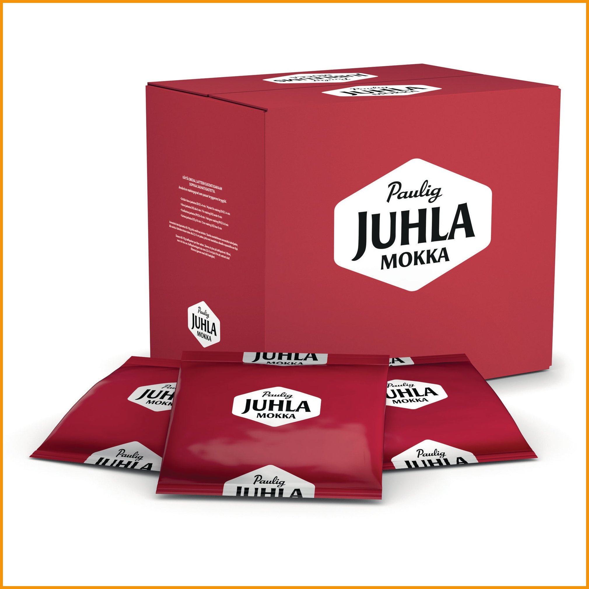 Juhla Mokka vaalea paahto on arabica-lajikkeista valmistettu kahvi, joka sopii erityisesti suomalaiseen makuun. Helsingin Vuosaaressa valmistettu vaaleapaahtoinen Juhla Mokka on ylivoimaisesti Suomen suosituin kahvi. Hienostunut ja keskitäyteläinen arabica-laatu sopii täydellisesti arkeen ja juhlaan. 300 gramman annospussi sopii erityisesti ammattilaitteisiin ja takaa aina tuoreen ja tasalaatuisen kahvin. Maun marjaisuuden ja raikkauden ansiosta Paulig Juhla Mokka säilyttää makutuntumansa myös suuremmilla pannullisilla. Kahvi valmistetaan Etelä- ja Keski-Amerikan sekä Afrikan parhaista arabica-kahvilaaduista. Vaalea paahto = paahtoaste 1 Puolikarkea jauhatus Paputyyppi:100% arabica Hieno ja keskitäyteläinen maku Ammattilaitteisiin sopiva 300g annospussi Valmistettu Suomessa Vastuullisesti hankittua kahvia Ainesosat: kahviToimitetaan 18 kappaleen erissä.