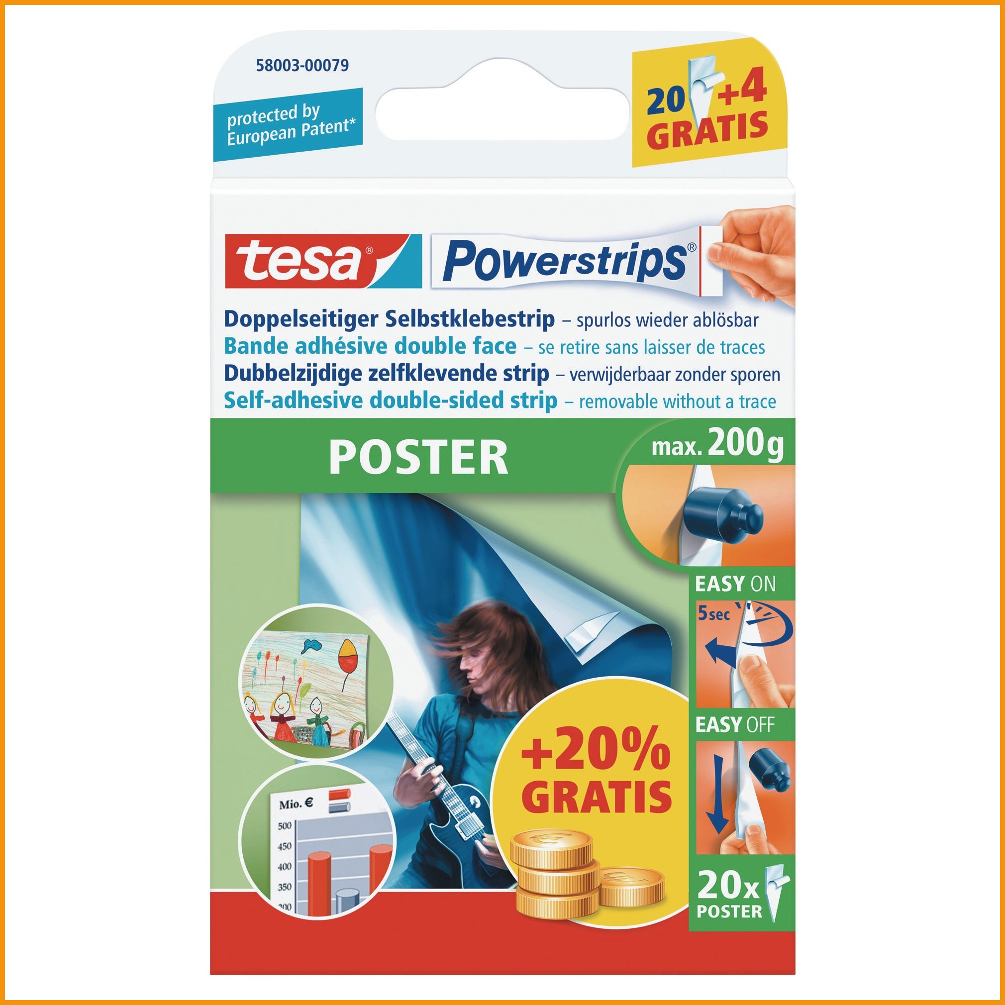 Tesa-julistetarra on helppo ja näkymätön julisteiden, kaaviokuvien tai fläppitaulujen kiinnittäjä. tarra ei jätä vaurioita kiinnityspinnalle tai julisteisiin, ja kestää maksimissaan 200 g:n kiinnitysvoiman.Julistetarrat toimitetaan 20 kappaleen erissä.