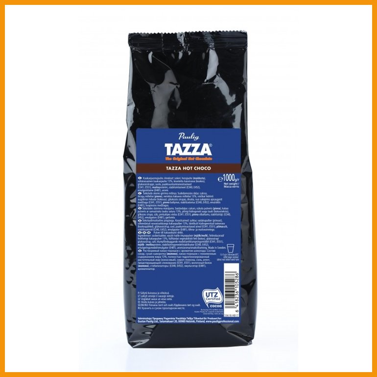 Paulig Tazza Hot Choco on kahvilaitteisiin suunniteltu kaakaojauhe, josta valmistetussa kaakaossa on herkullisen suklainen maku.Tuotteella on Rainforest Alliance -ympäristösertifikaatti.