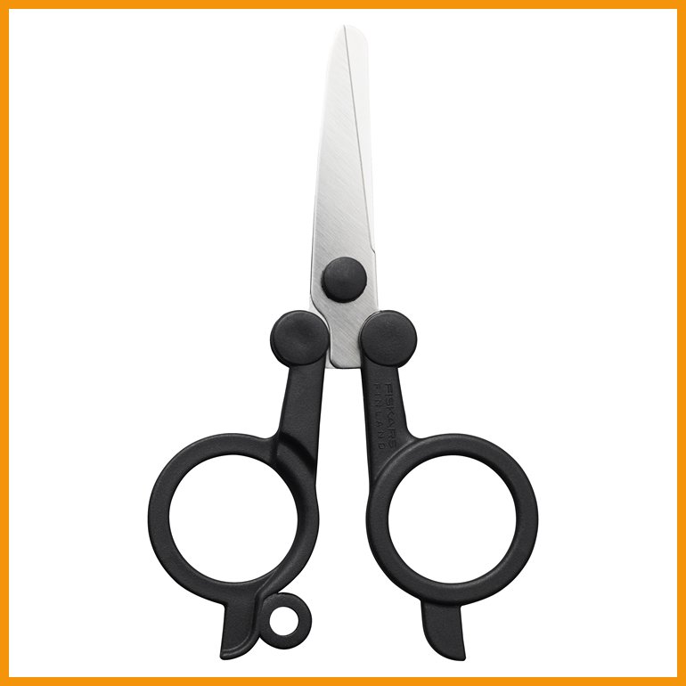 Fiskars Functional Form ReNew -kääntösakset soveltuvat helppoihin leikkuutöihin töissä, koulussa ja kotona, ja ne on valmistettu vähintään 70-prosenttisesti kierrätysmateriaaleista. Korkealaatuisissa, ruostumattomasta teräksestä valmistetuissa terissä on tylpät kärjet, joten saksia voi säilyttää turvallisesti taskussa, avainnipussa tai -nauhassa. Taittuva kädensija on yhdistelmä kierrätysmuovia ja lasikuitua. Sakset voi ottaa mukaan lennolle käsimatkatavaroissa. Sakset on valmistettu Suomessa laadukkaista ja kestävistä materiaaleista.Pituus: sakset 11 cm