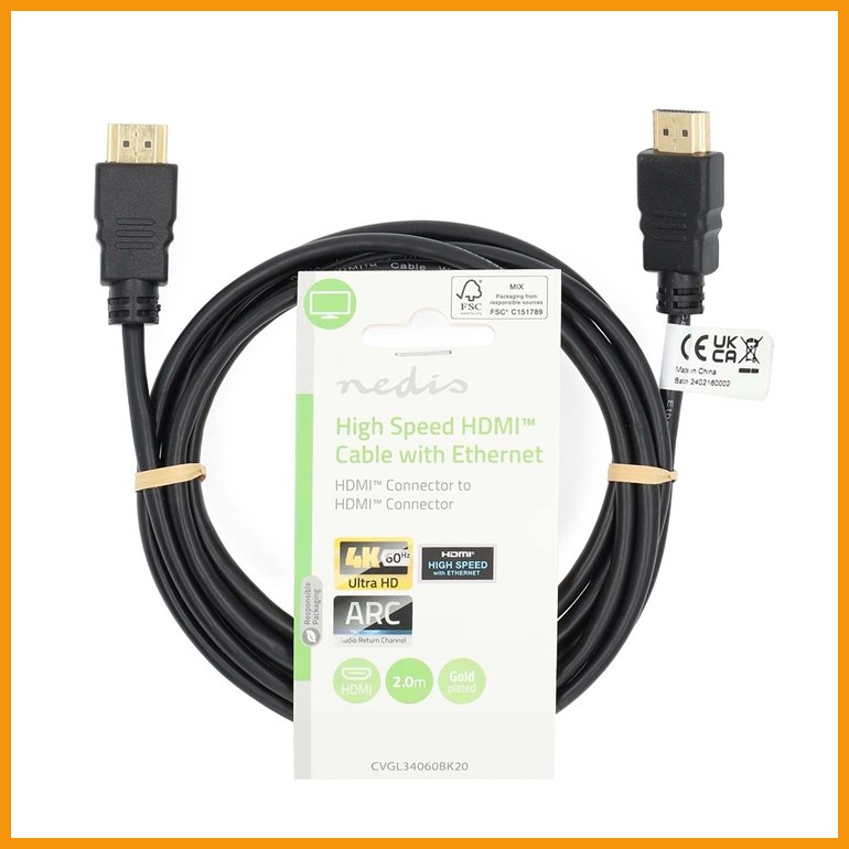 Nedis High Speed HDMI with Ethernet -verkkokaapeli siirtää teräväpiirtosignaalin jopa 4K@60 Hz resoluutioon asti. Laadukkaat liittimet takaavat varman signaalinsiirron, selkeän äänen ja veitsenterävän kuvan. Kaapelilla yhdistät niin televisiot ja näytöt pelikonsoleihin kuin lähettimet, projektorit ja suoratoistovastaanottimetkin. Kaapeli tukee kehittyneitä näyttöteknologioita, kuten ARC (Audio Return Channel), HDCP, Full HD 4K ja 3D.Liittimet: HDMI - HDMI