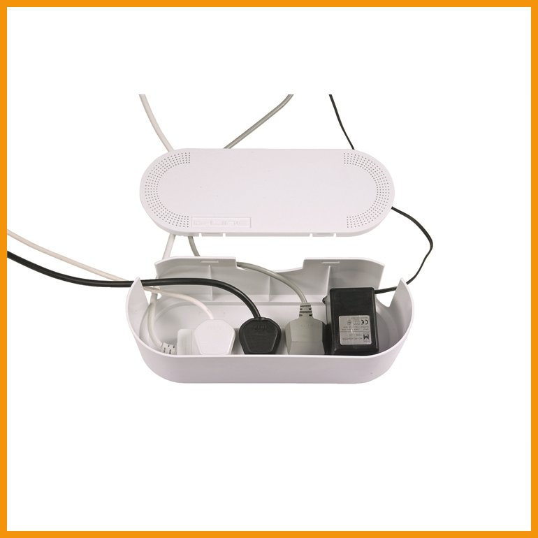 Kaapelikotelo pitää johdot järjestyksessä ja suojaa niitä. Jakorasia mahtuu kotelon sisälle. Helppo avata ja sulkea. Mitat L41,5 x S16,5 x K13,5 cm.Kaapelikotelo iso D-Line valkoinen on korkeatasoinen toimistotarvike, jonka toimituksen kesto on verkkokaupasta tilattuna 1-2 päivää.