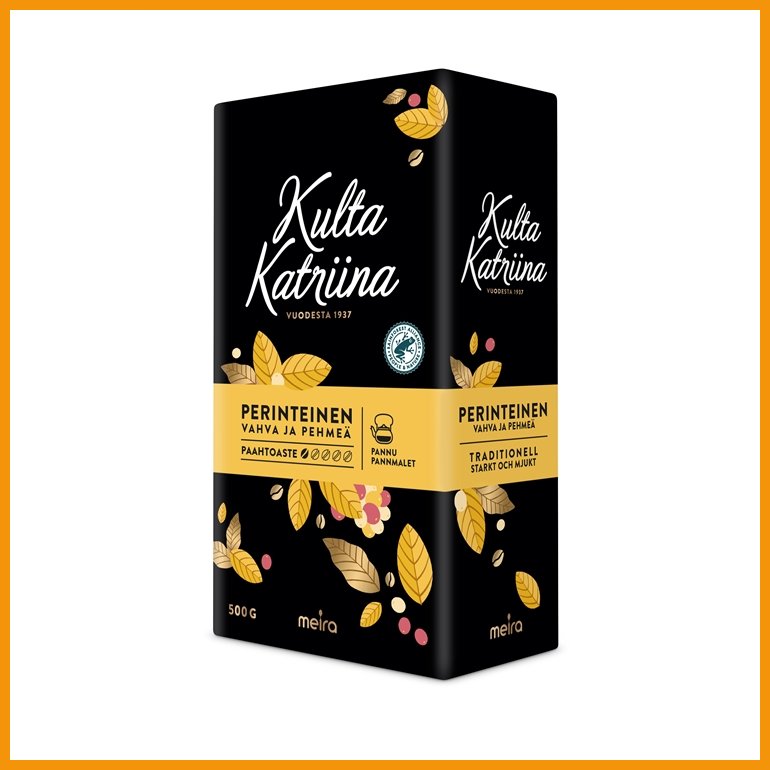 Kulta Katriina on vaaleapaahtoinen, vahva ja pehmeä klassikkokahvi, jota on juotu jo vuodesta 1937. Hienoaromisen ja pehmeähappoisen kahvin pavut tulevat Etelä- ja Väli-Amerikasta sekä Itä-Afrikasta. Kestävästi valmistettu tuote on Rainforest Alliance -sertifioitu. Pannujauhatus.Paahtoaste: 1