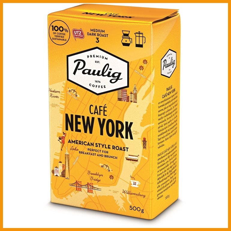 Pauligin Cafe New York on amerikkalaiseen tapaan keskitummaksi paahdettu kahvisekoitus Latinalaisen Amerikan ja Brasilian kahvipavuista. Hedelmäinen kahvi on aromikas, tasapainoisen hapokas ja täyteläinen. Suodatinjauhatus.Paahtoaste: 3