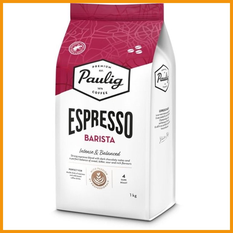 Pauligin Espresso Barista on intensiivinen ja aromikas espressosekoitus, joka yhdistelee tasapainoisesti makeutta, karvautta, happamuutta ja täyteläisyyttä. Ammattilaisten tarpeisiin kehitetty espressosekoitus on valmistettu makeista brasialaisista sekä valikoiduista keskiamerikkailaisista ja aasialaisista kahvilajikkeista. Runsasaromisessa kahvissa on viettelevän pitkä jälkimaku. Papukahvi.Paahtoaste: 4