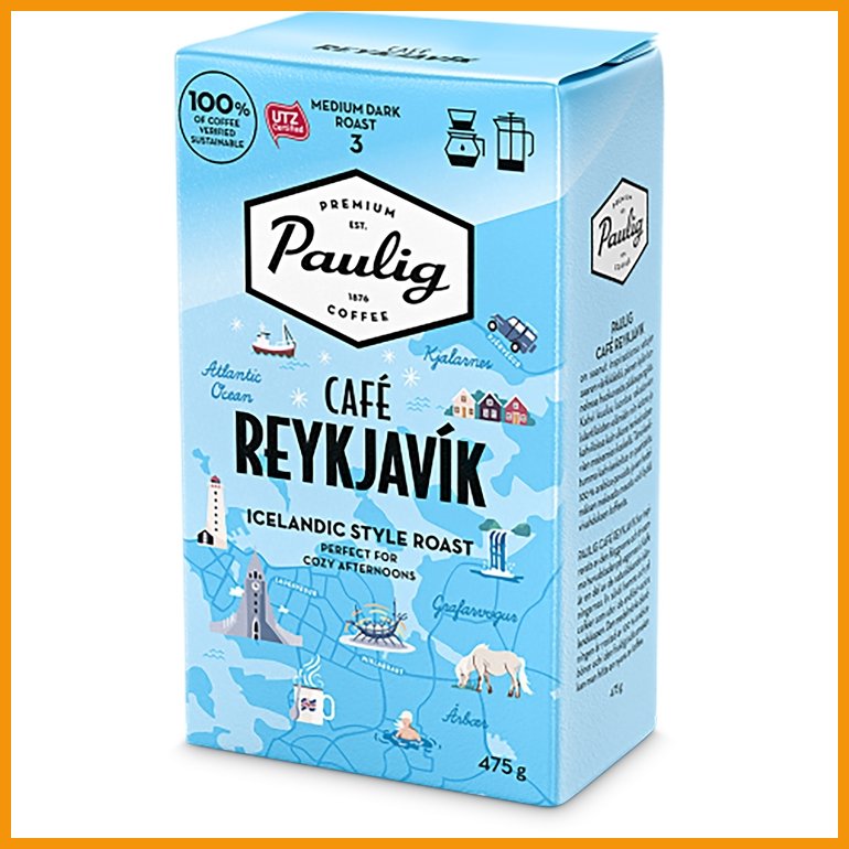 Paulig Cafe Reykjavik on Islannin värikkäästä pääkaupungista inspiraationsa saanut kahvi, jossa on hedelmäisen makea maku ripauksella toffeeta. Sekoitus on valmistettu maailman parhaista arabica-pavuista. Kestävästi valmistetulla tuotteella on Rainforest Alliance -sertifikaatti. Suodatinjauhatus.Paahtoaste: 3