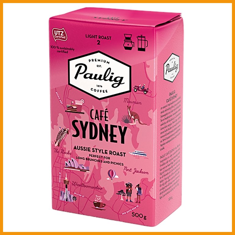 Paulig Cafe Sydney on australialaisesta elämäntyylistä inspiraationsa saanut kahvi, jolla on hedelmäinen ja hunajaisen makea maku. Sekoitus on valmistettu Afrikan ja Latinalaisen Amerikan parhaista arabica-pavuista. Kestävästi valmistetulla tuotteella on Rainforest Alliance -sertifikaatti. Hieno jauhatus.Paahtoaste: 2
