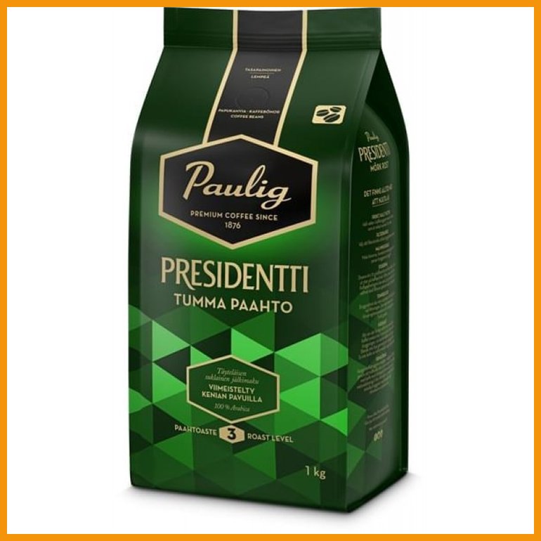 Pauligin Presidentti Tumma Paahto on lähes satavuotias klassikkokahvi. Tummapaahtoinen ja suklaisella jälkimaulla siunattu kahvi on täyteläinen ja aromikas. Kestävästi valmistettu tuote on Rainforest Alliance -sertifioitu. Papukahvi.Paahtoaste: 3