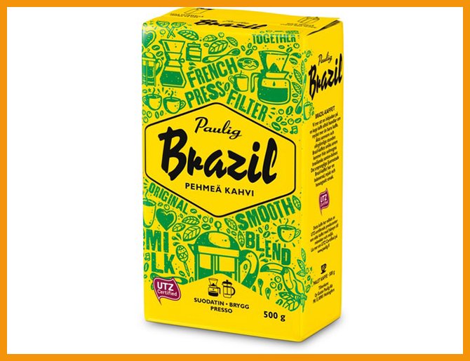 Pauligin Brazil on pehmeän tasapainoinen ja hunajainen kahvi, joka valmistetaan Brasilian auringon alla kypsyneistä Santos-pavuista. Kestävästi valmistetulla tuotteella on Rainforest Alliance -ympäristösertifikaatti. Puolikarkea suodatinjauhatus.Paahtoaste: 2
