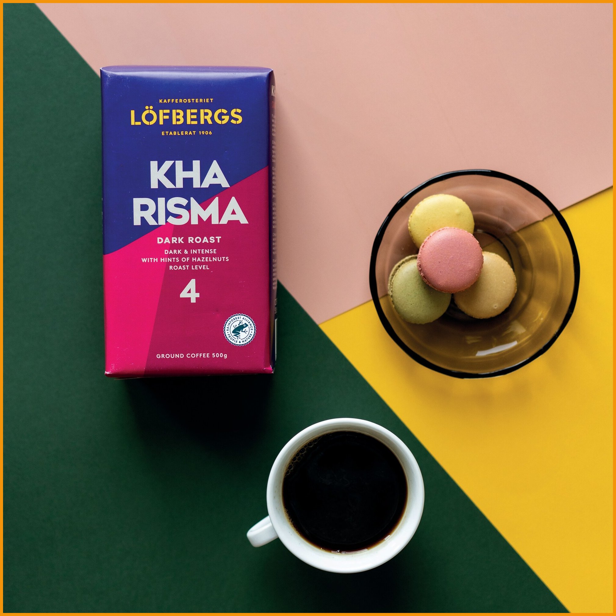 Löfbergs kharisma on luonteikas, intensiivinen ja maukas kahvi. tummapaahtoisessa maussa on havaittavissa pähkinäisiä vivahteita, ja jälkimakua täydentää kaakaomainen häivähdys.kahvisekoitukseen käytettävät arabica-pavut tulevat brasiliasta, kolumbiasta, keski-amerikasta, itä-afrikasta ja kaakkois-aasiasta. ympäristöystävälliselle tuotteelle on myönnetty rainforest alliance -sertifikaatti.