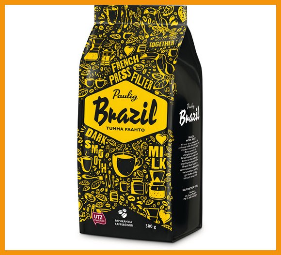 Pauligin Brazil Dark Roast on tummapaahtoinen kahvisekoitus, jonka pehmeys, makeus ja runsaus tavoittelevat täydellisyyttä. Kestävästi valmistettu tuote on Rainforest Alliance -sertifioitu. Pussissa on 500 g kahvipapuja.Paahtoaste: 3,5