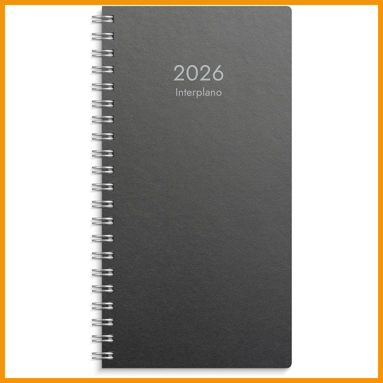 Kalenteri 2026 Interplano musta muovikansi (kaksikielinen)