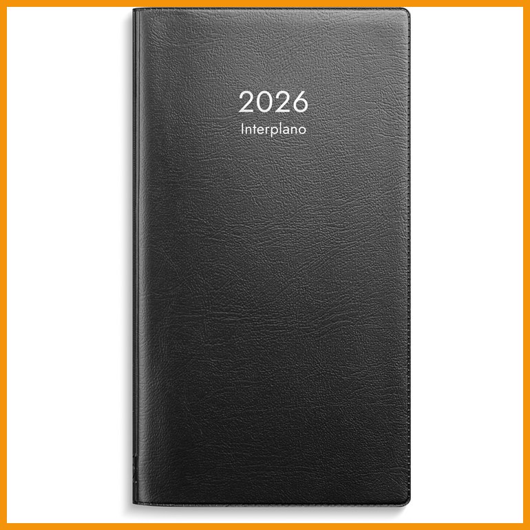 Kalenteri 2026 Interplano musta keinonahka (kaksikielinen)