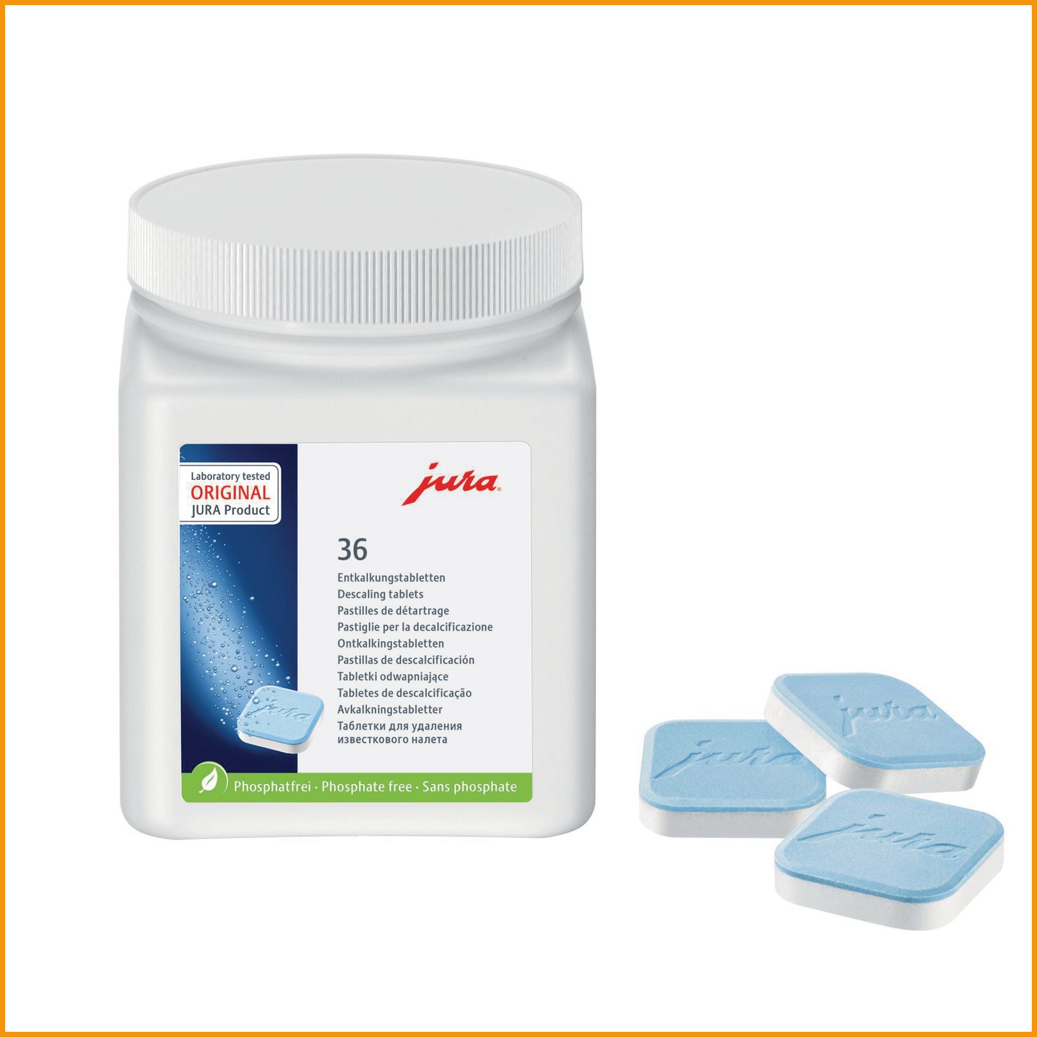 Jura-kalkinpoistotablettien avulla pidät jura-kahvikoneen hyvässä kunnossa. tabletti poistaa tehokkaasti kaikki kalkkijäämät kahviautomaatistasi. ei sisällä fosfaattia. purkissa on 36 tablettia. Kalkinpoistotablettien minimitilaus 1 paketti = 36 kpl. Tukkupakkauksessa 24 pakettia.Kalkinpoistotabletit toimitetaan 36 kappaleen erissä.