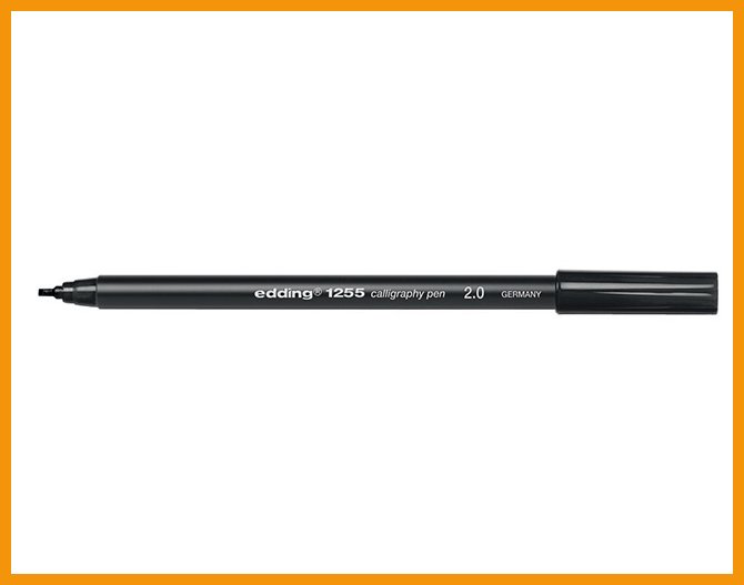 Edding 1255 on viistolla kuitukärjellä varustettu kalligrafiakynä. Vesipohjainen ja pysyvä pigmenttimuste kestää sekä vettä että haalistumista.Musteen väri: musta